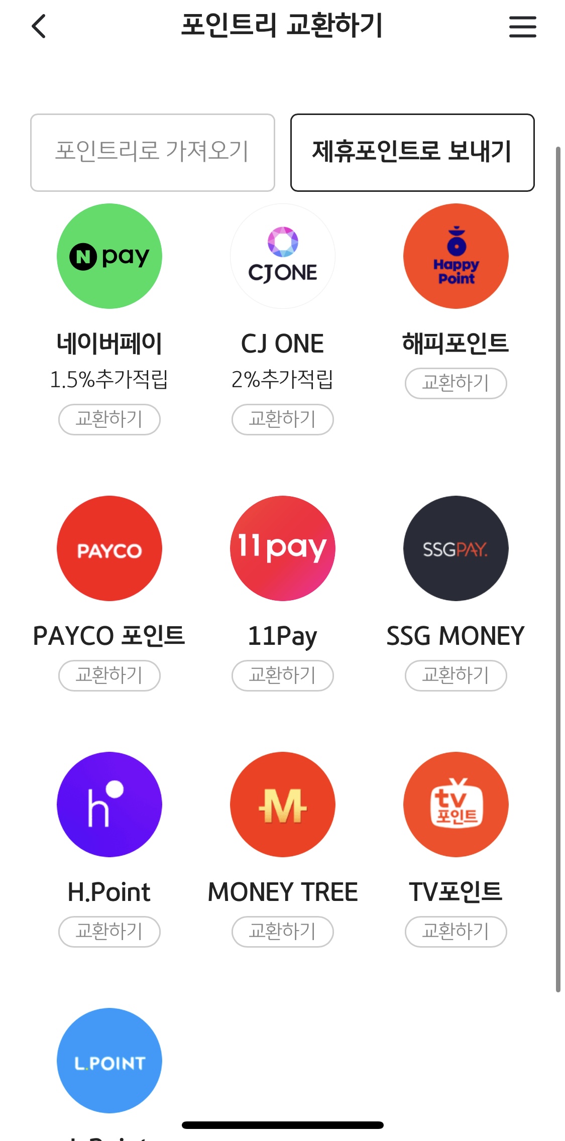그러면 포인트리를 원하는 제휴처로 옮기는 셈.