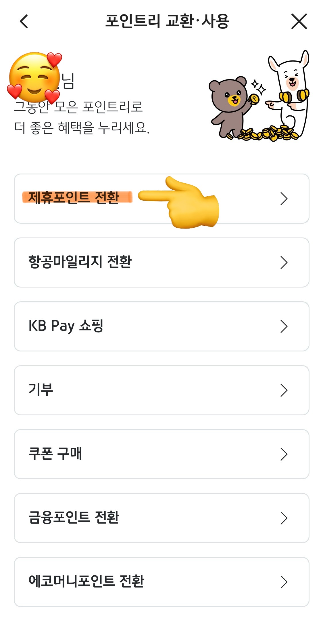 그러고나서 포인트 교환하기를 누른 후 제휴 포인트로 보내기를 누른다.